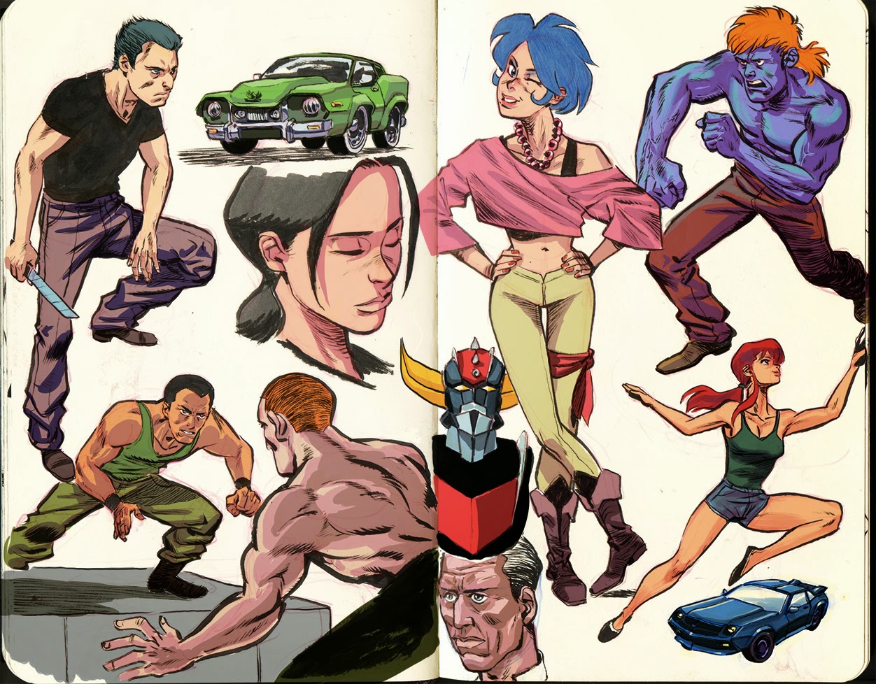 While I was still trying to draw the usual stuff I feel safe doing, I tried to get in gear working on paper again and have some fun as well. Hopefully I'll get more ambitious when the last pages are filled and I start on the new sketchbook I got which is twice as big.
